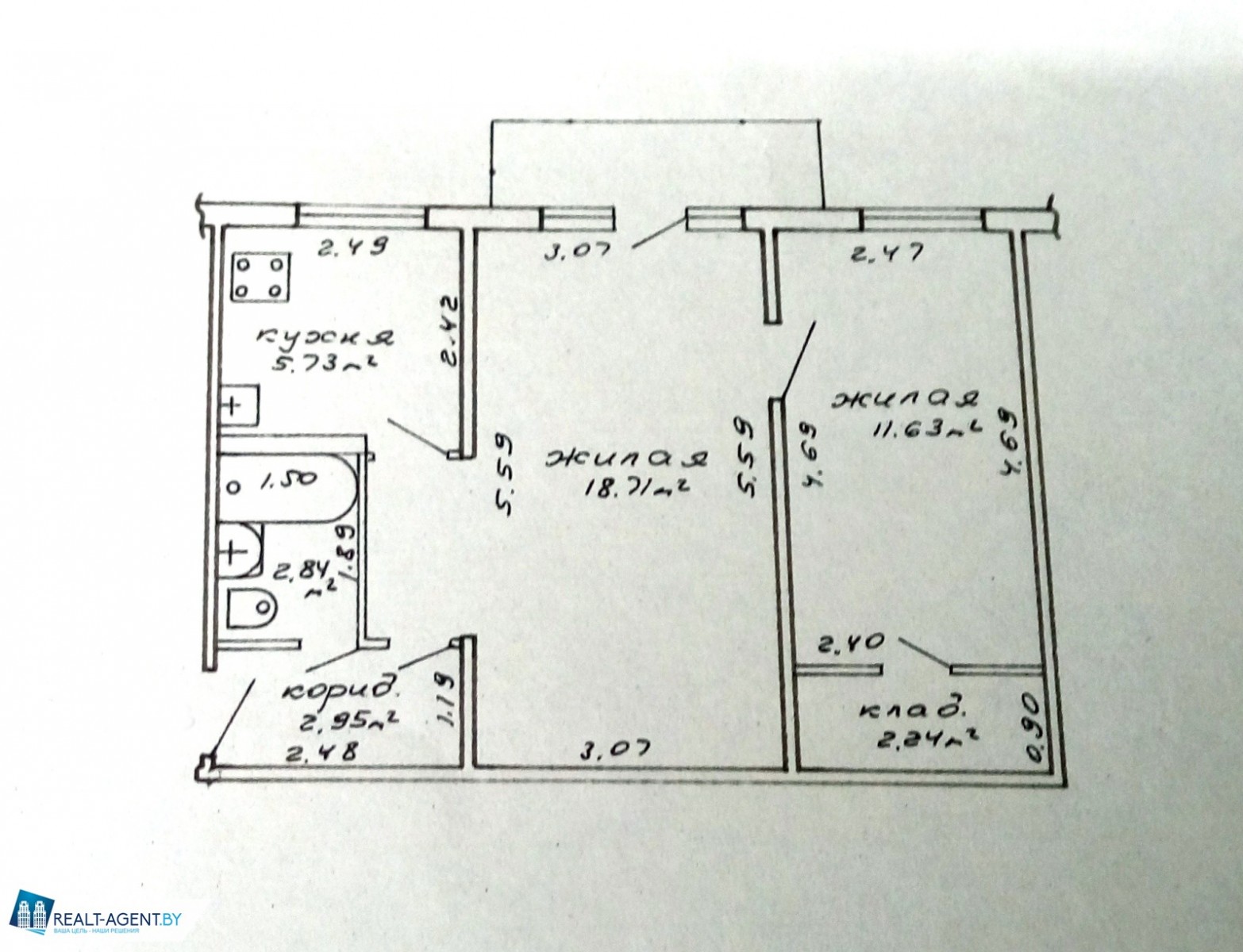 | Площадь общая/жилая/кухня | 44,1/ 30,4/ 5,73 |