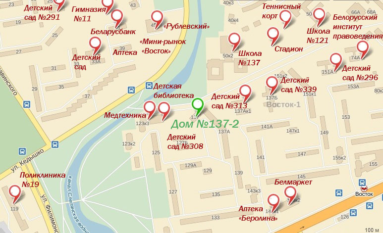 Микрорайон Восток очень ценят минчане – тут Вам и метро, и хорошая социальная обстановка, и множество зеленых парков и сквериков, и вся инфраструктура в шаговой доступности. Также район известен своей хорошей водой и экологичностью – никаких заводов и промышленных объектов. Автомобилисты оценят район – 3 минуты до МКАД, а на проспект Независимости выехать – 1 минута. В таком районе жить в удовольствие – люди живут приятные, все, что нужно – рядом. Вот и получается, что район – одни плюсы, а квартиры в нем нарасхват.