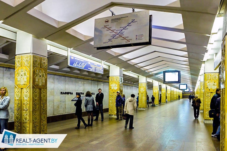 От двери квартиры до входа в ст. м. Площадь Якуба Коласа 1 минута прогулочным шагом.