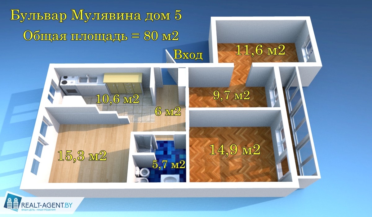 | Площадь общая/жилая/кухня | 80 / 50 / 10.6 м? |