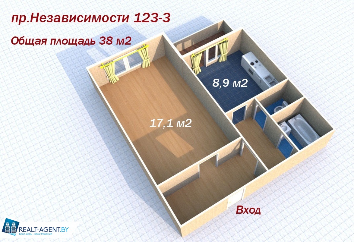 | Площадь общая/жилая/кухня | 39/ 17/ 9 |