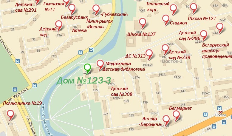 Микрорайон Восток очень ценят минчане – тут Вам и метро, и хорошая социальная обстановка, и множество зеленых парков и сквериков, и вся инфраструктура в шаговой доступности. Также район известен своей хорошей водой и экологическим благополучием – никаких заводов и промышленных объектов. Автомобилисты оценят район – 3 минуты до МКАД, а на проспект Независимости выехать – 1 минута. В таком районе жить в удовольствие – люди живут приятные, все, что нужно – рядом. Вот и получается, что район – одни плюсы, а квартиры в нем нарасхват.