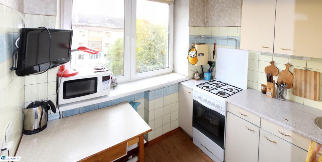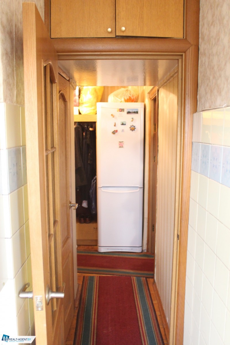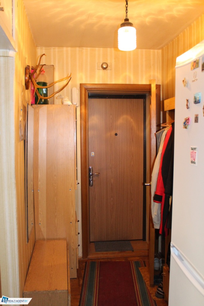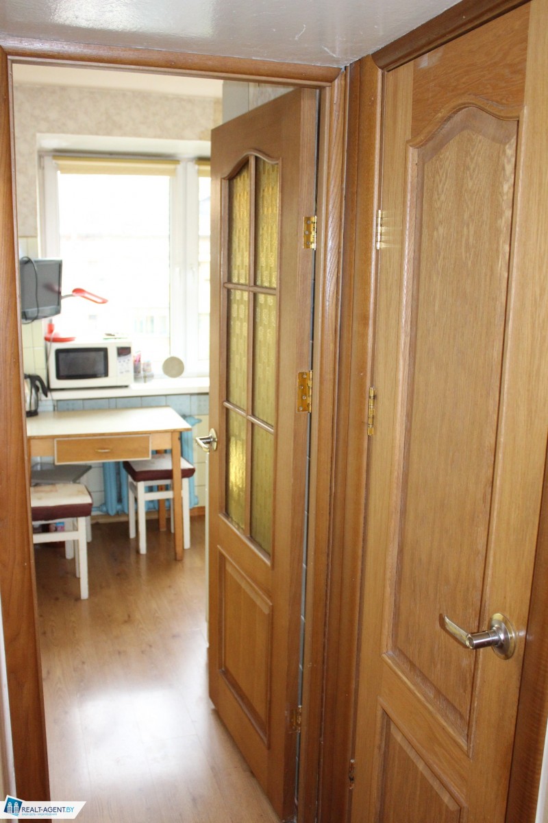 Состояние не новое, но аккуратное. Есть металлическая входная дверь и стеклопакет в кухне, межкомнатные двери из массива. На полу: комната – паркет, коридор и кухня – ламинат.